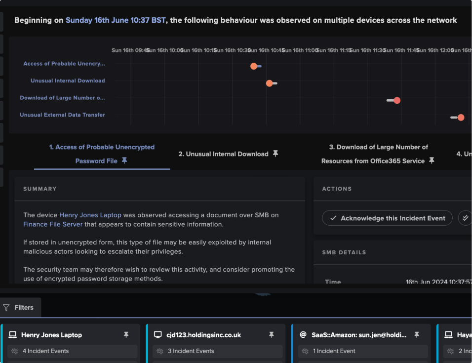 Cyber AI Analyst investigations span all of your covered enterprise locations, including network, email, cloud, OT, Identity, and SaaS