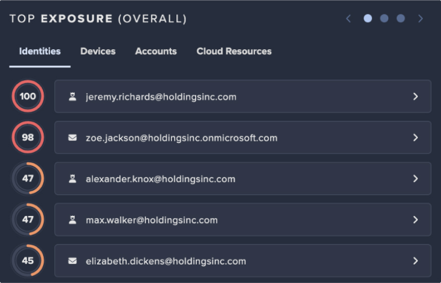 Top rankings and risk baselines provide an effective, prioritized view for cyber risk discovery and allow you to address the users, devices, and vulnerabilities which pose the most severe compromise risk to your business.